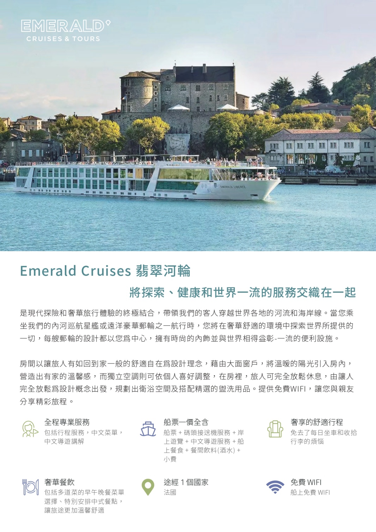2. 歐洲河輪付款及取消條款:河輪航程的取消必須以【書面形式】提出,提出日期攸關訂單取消日,會影響取消罰款。因歐洲河輪船位預訂時,付款條件、取消、變更及退款等相關規定極為嚴格,請務必詳讀以下的付款與取消條款;就觀光局所規定之國外團體旅遊定型化契約中,第十三條有關《出發前旅客任意解除契約》之條規款定,雙方同意就本定型化契約