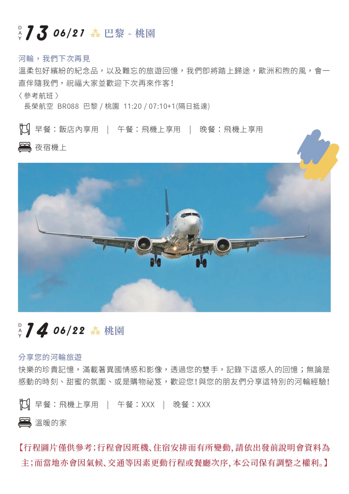 行程/航班/飯店/餐食 皆以「行前說明會」所列資料為主。