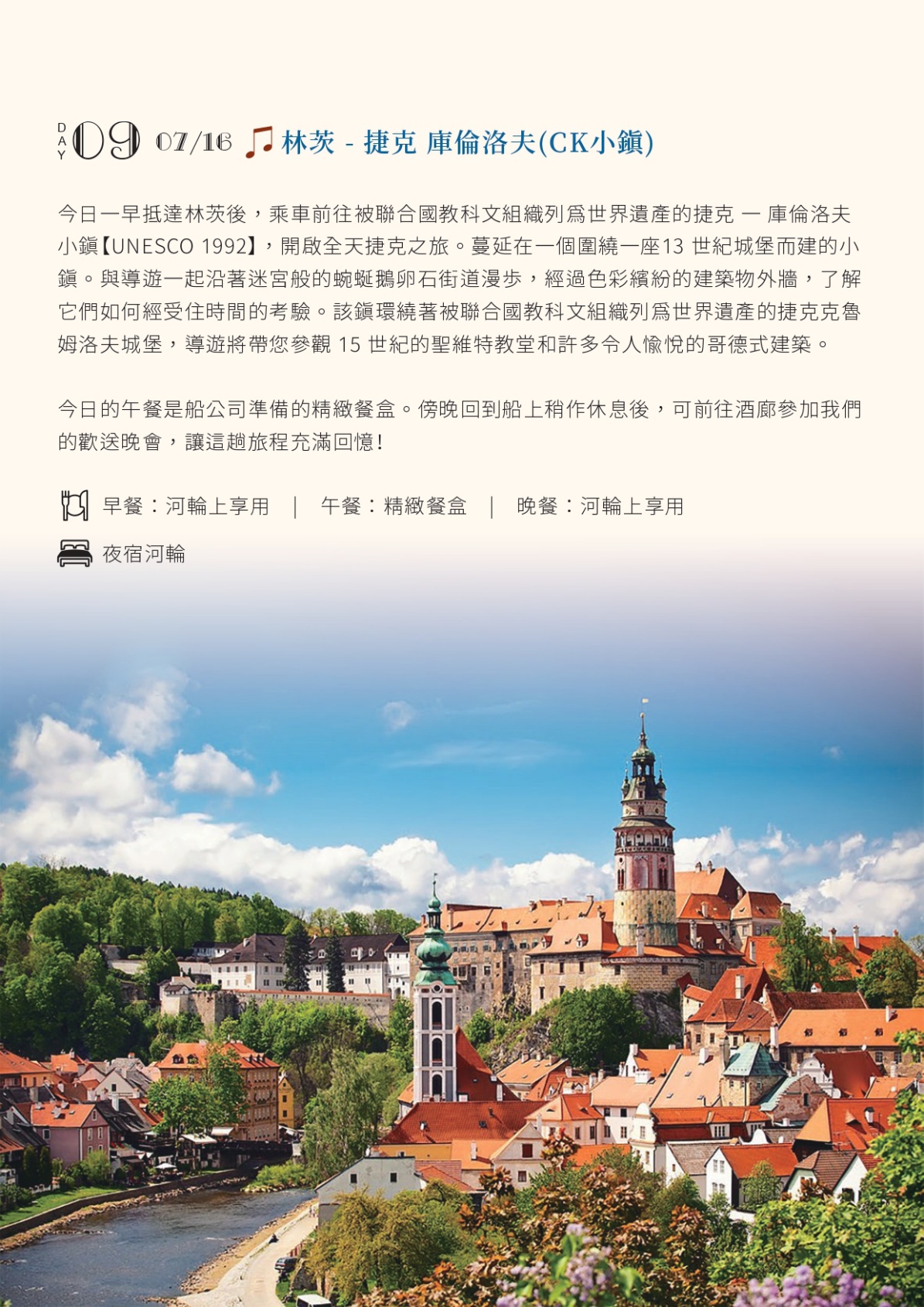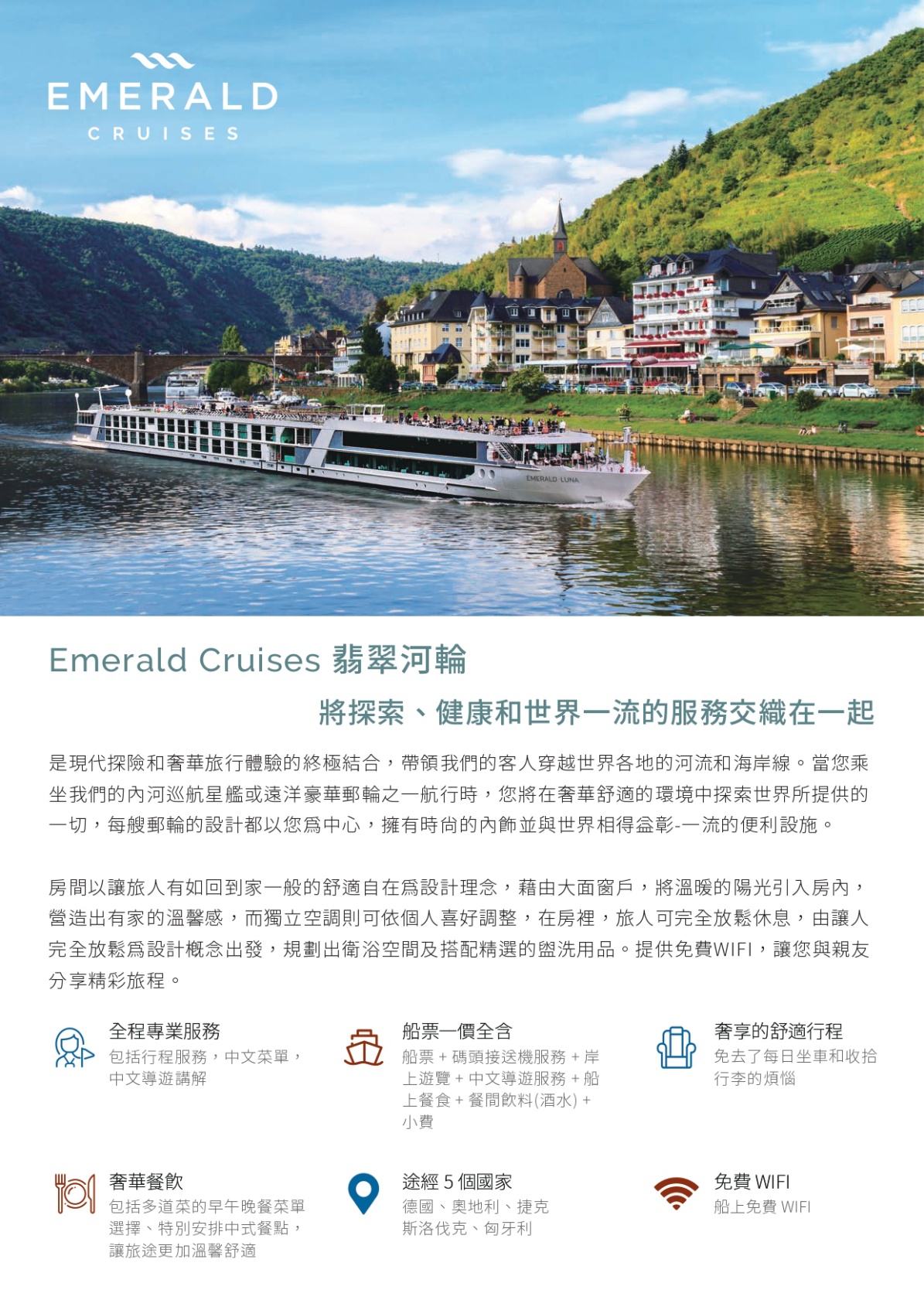 2. 歐洲河輪付款及取消條款:河輪航程的取消必須以【書面形式】提出,提出日期攸關訂單取消日,會影響取消罰款。因歐洲河輪船位預訂時,付款條件、取消、變更及退款等相關規定極為嚴格,請務必詳讀以下的付款與取消條款;就觀光局所規定之國外團體旅遊定型化契約中,第十三條有關《出發前旅客任意解除契約》之條規款定,雙方同意就本定型化契約