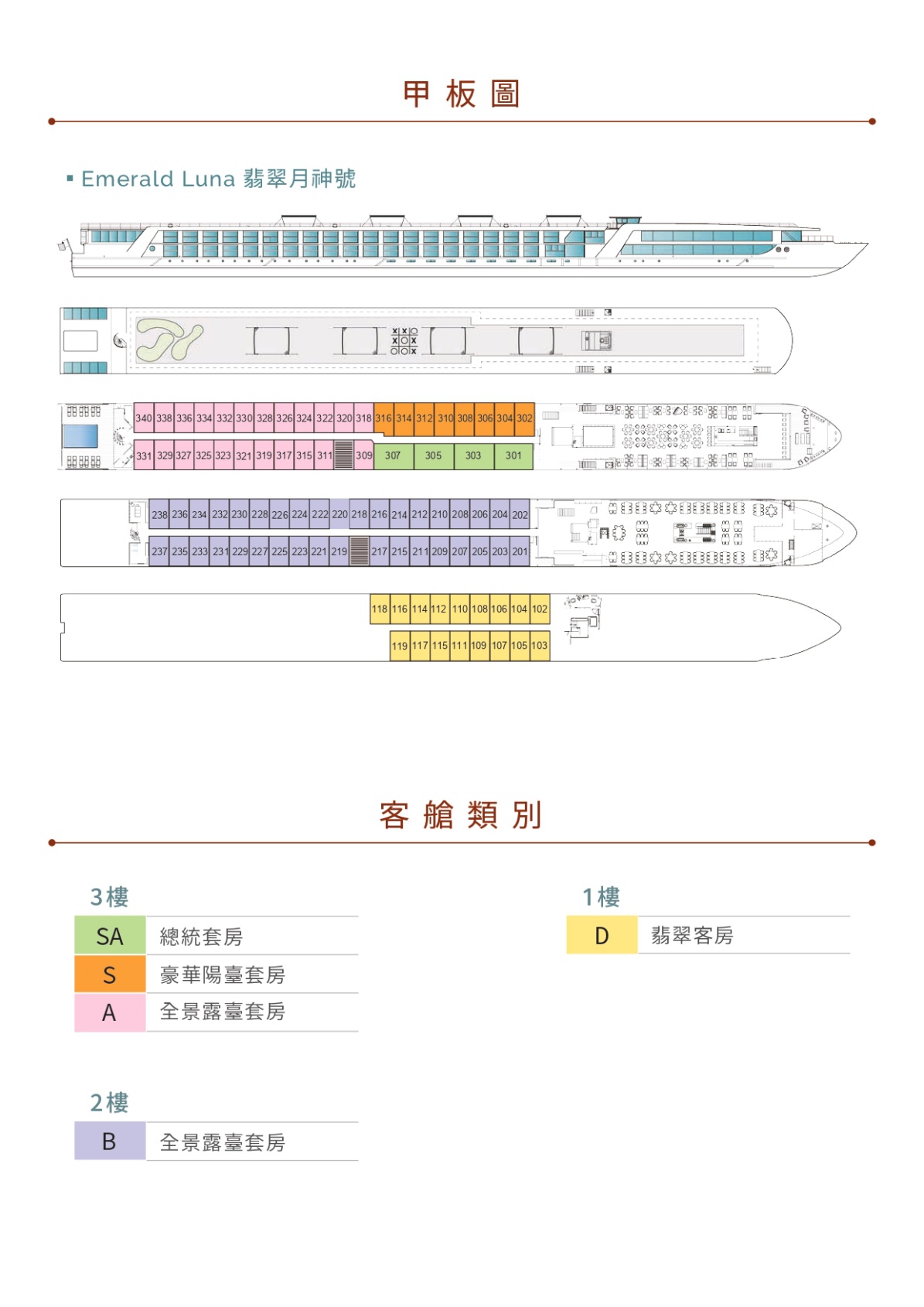 | 出發日期 | 3樓總統套房 | 3樓豪華陽台套房 | 3樓全景露台套房 | 2樓全景露台套房 | 1樓翡翠客房 |