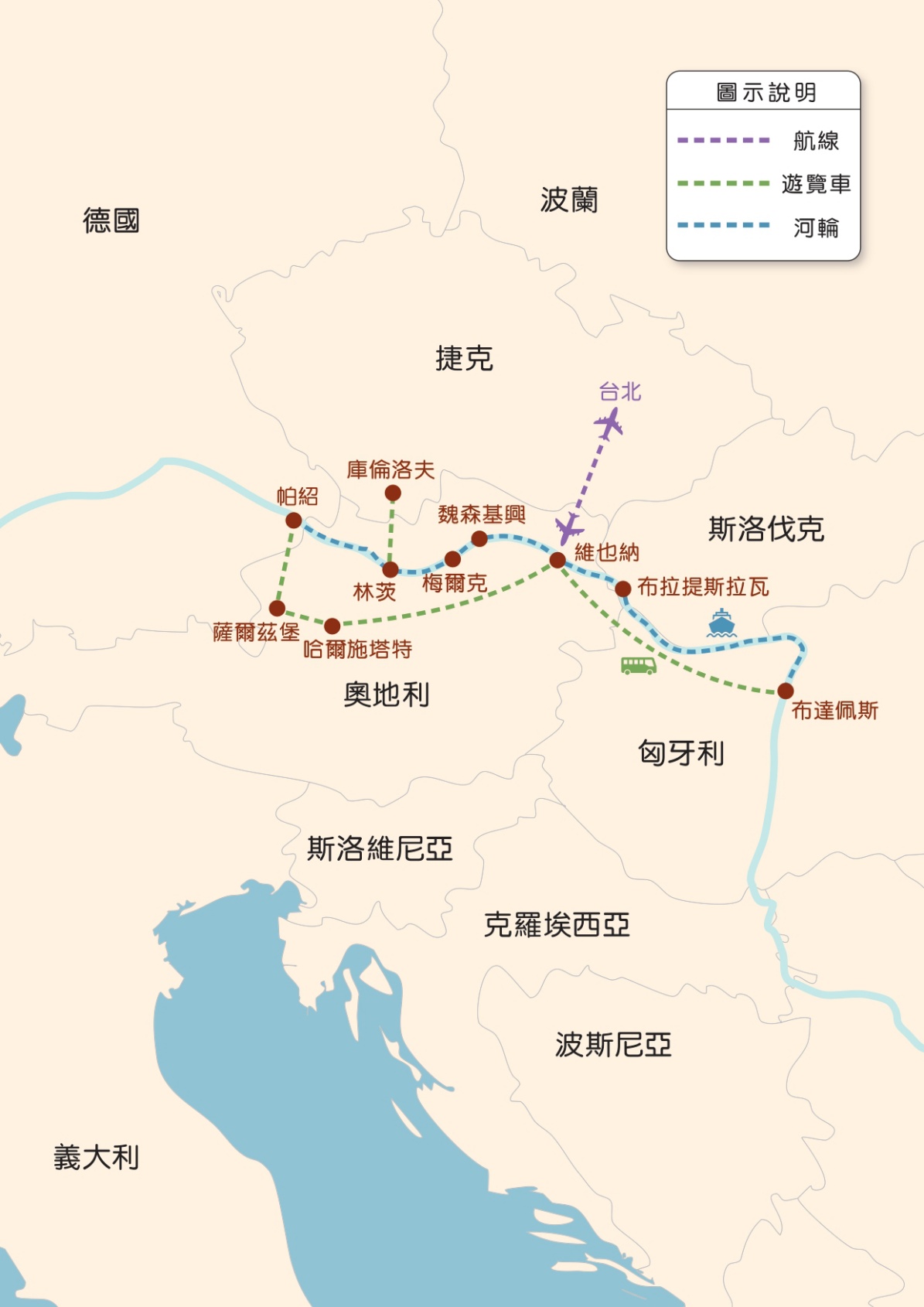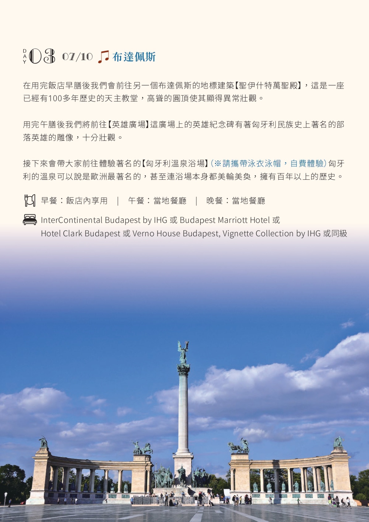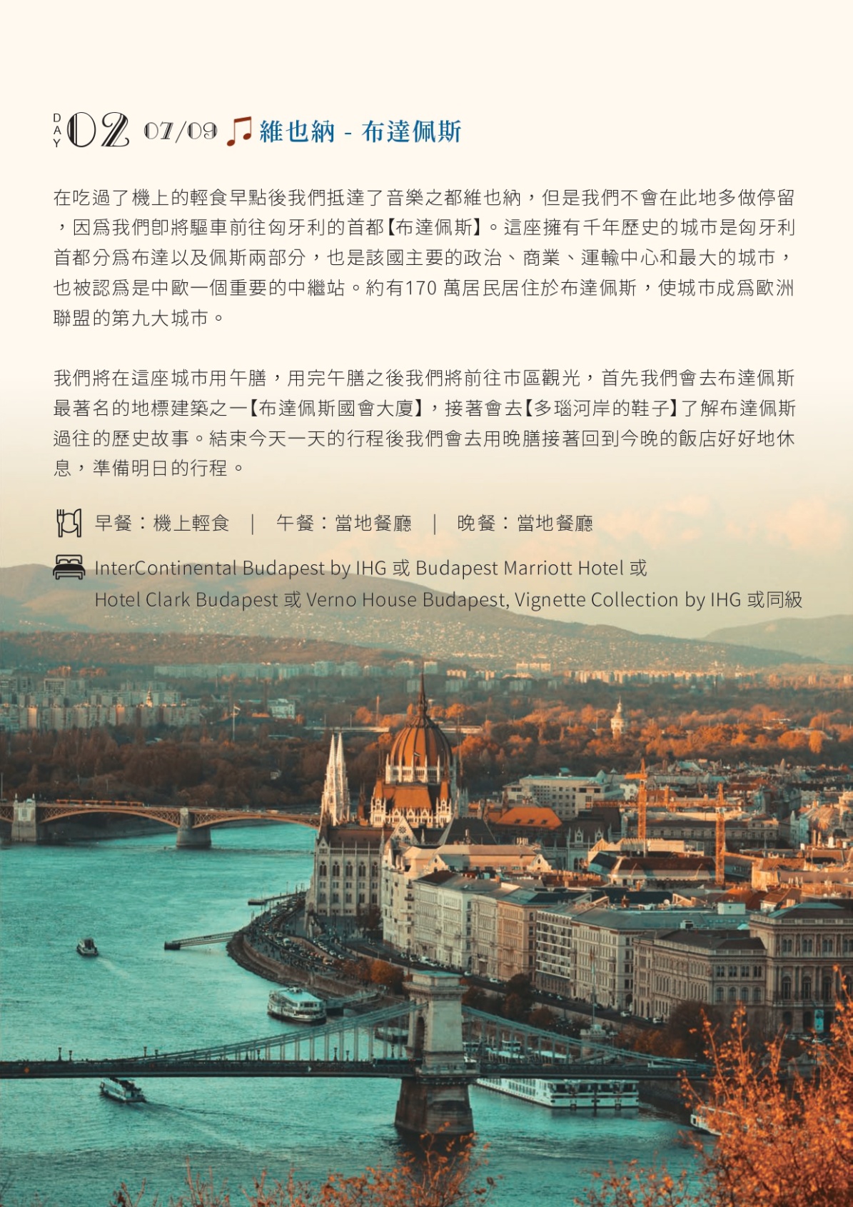 3. 團費不含:陸地行程之飯店床頭與行李搬運費用(3-5歐/件) ...等禮貌性質性的小費,此行程中未列出的項目及其他私人消費。