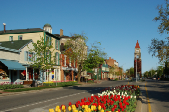 這座優雅的古鎮被公認為北美保存最好的⼗九世紀⼩鎮。街上的時鐘台中⼼點,北邊是安⼤略湖,街道兩旁有許多⼗九世紀留下來⼗分具有歷史意義的英式建築物以及各式各樣古意盎然的精巧⼩商店。